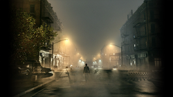 After the protagonist solves the final puzzle, a cutscene shows him in Silent Hill, presumably unaware of where he is. He looks over his shoulder and continues making his way into the town.