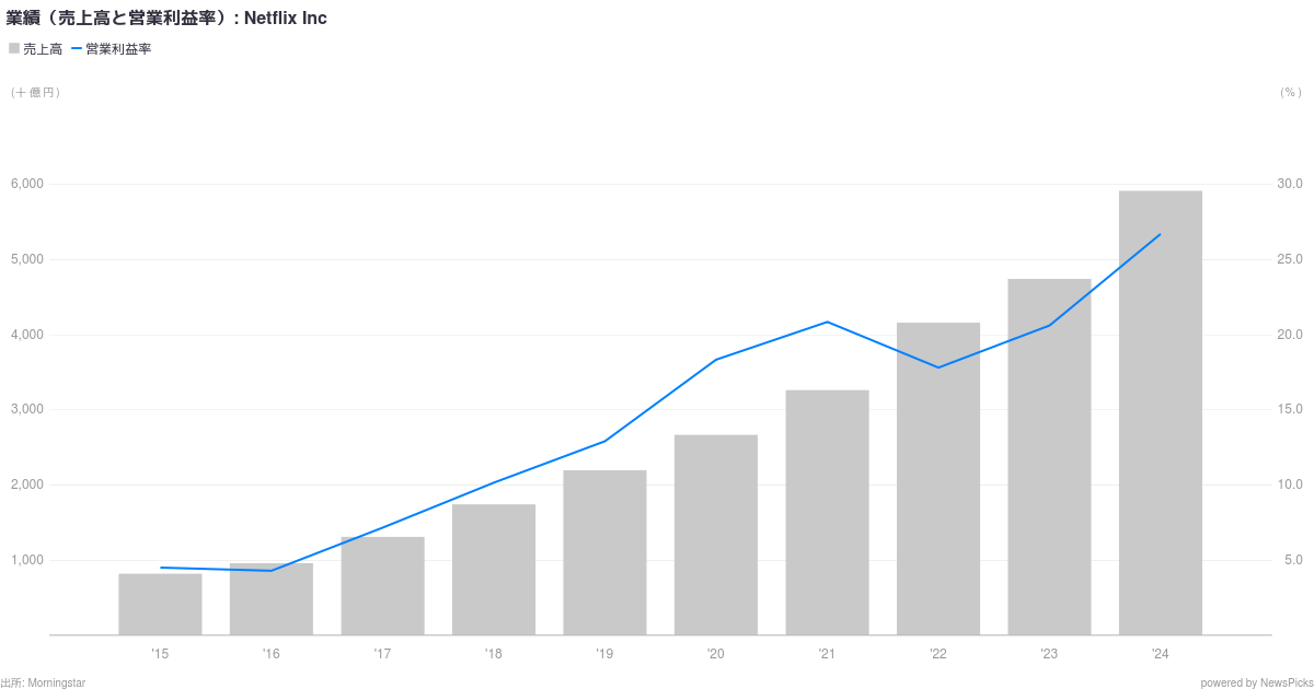 Netflix(ネットフリックス、ナスダック: NFLX)は、アメリカ合衆国のオンラインDVDレンタル及び映像ストリーミング配信事業会社。アメリカ合衆国の主要なIT企業で、FAANGの一つである。2017年12月の時点で190ヵ国以上で配信事業を展開し、2018年の売上は157億ドル(1.57兆円)、契約者数は世界で1億2500万人。 ウィキペディア