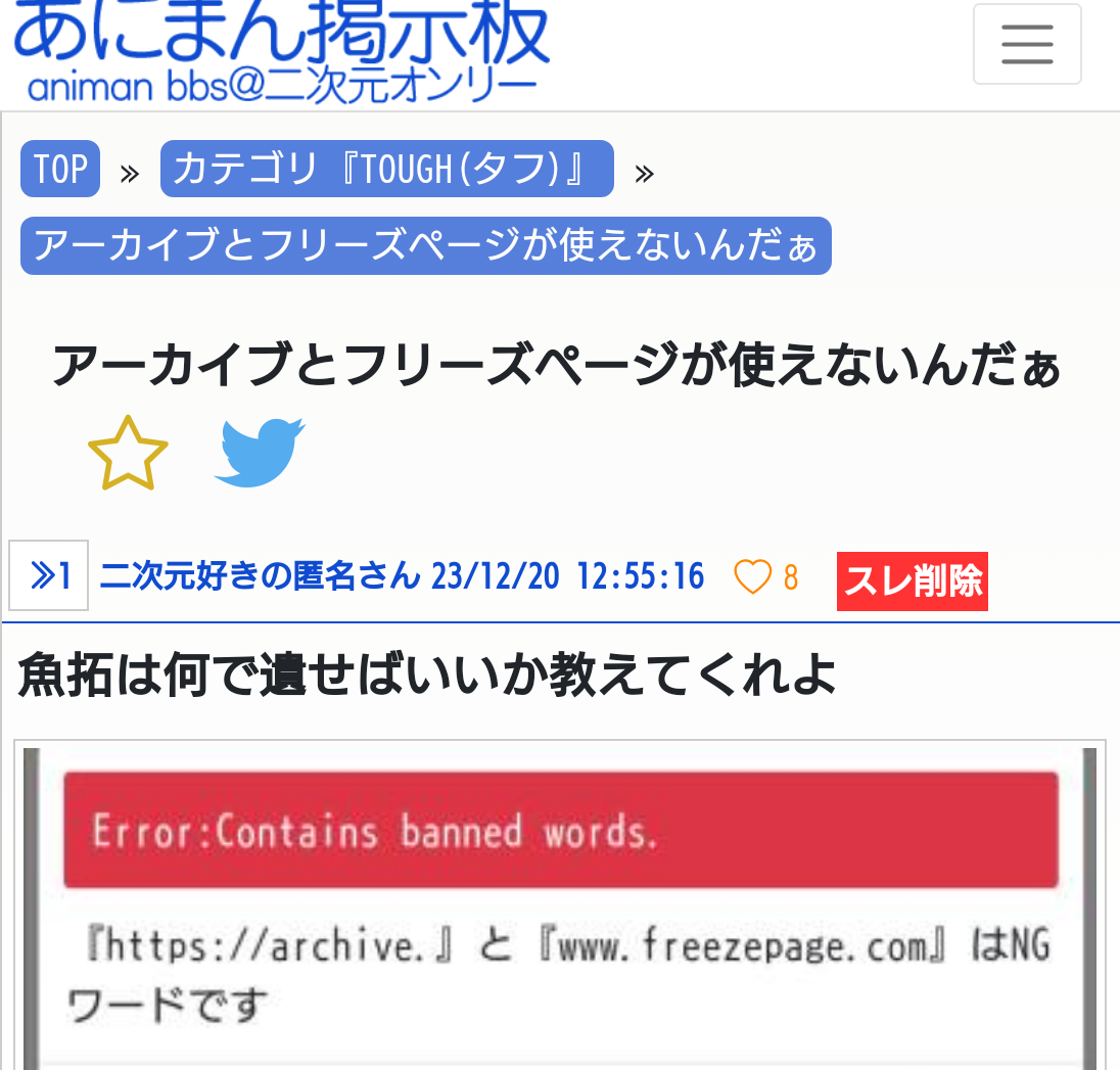 タフオンを愚弄する呪術アンチのツイートで晒しスレが立つ