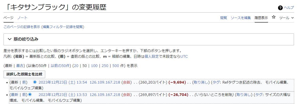 アレが手を付ける前の記事に差し戻せないのかねぇ……