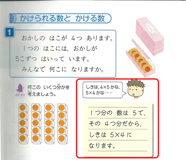 で,子どもの算数の教科書(啓林館「わくわく算数 2下」)を見てみたけど,ばっちり順序があるという説明がされている。
