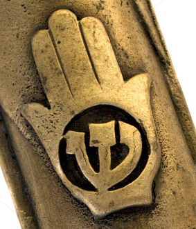 "При этом обе широко расставленные "трехпалые" кисти рук ( символизирующие таким образомеврейскую букву Schin, в сокращении - имя Бога (Всемогущего) Schadai ) являются по существуфамильным гербом, по всей вероятности, старейшим в мире. Он характеризует членов семьи Коэн (Коган), потомков Авраама, брата Моисея из библейского ствола Леви, которые проводили службыв святынях Израиля. Старейшие археологические свидетельства обнаруживают этот символ на могилах в античном Израиле, датируемых временами первых храмов.