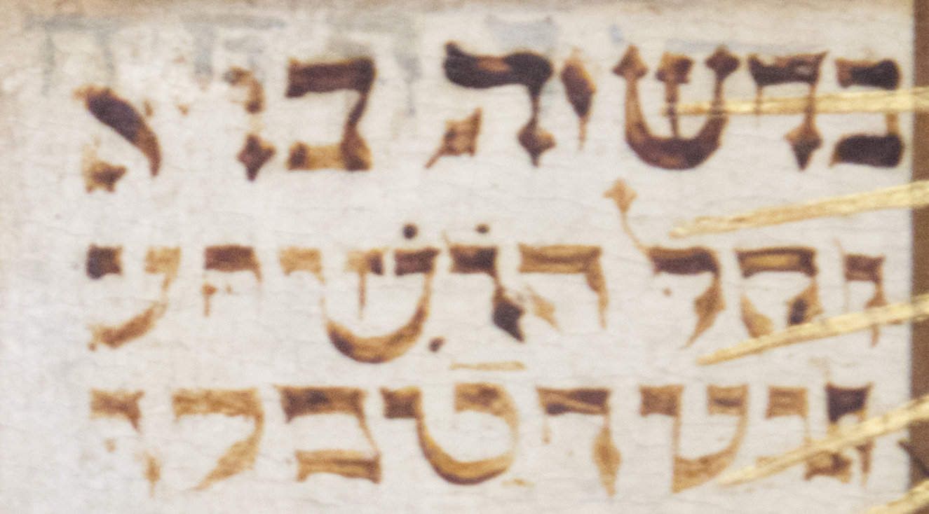 "Берешит бара Элохим эт, ха-шамаим ве-эт, ха-арец". "Первая книга Моисея" (Пятикнижие). С древней фрески.
