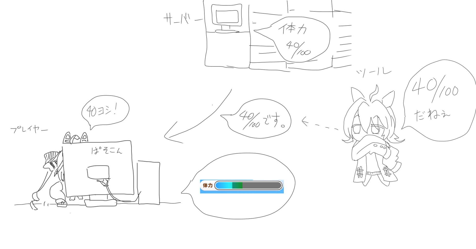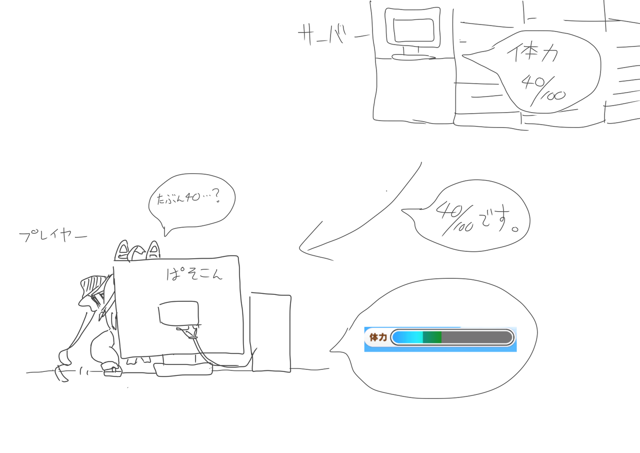 「体力は40/100ですよ」「佐竹の絆ゲージは66ですよ」という情報をこっちに送っているのに