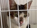 スリムなボディにアーモンド形の緑の瞳。それはそれはきれいな猫なのに、誰かがケージをのぞき込むたびに、精一杯歯をむいて威嚇します。眼光鋭くすごむさまは、まるで不良少女のよう。