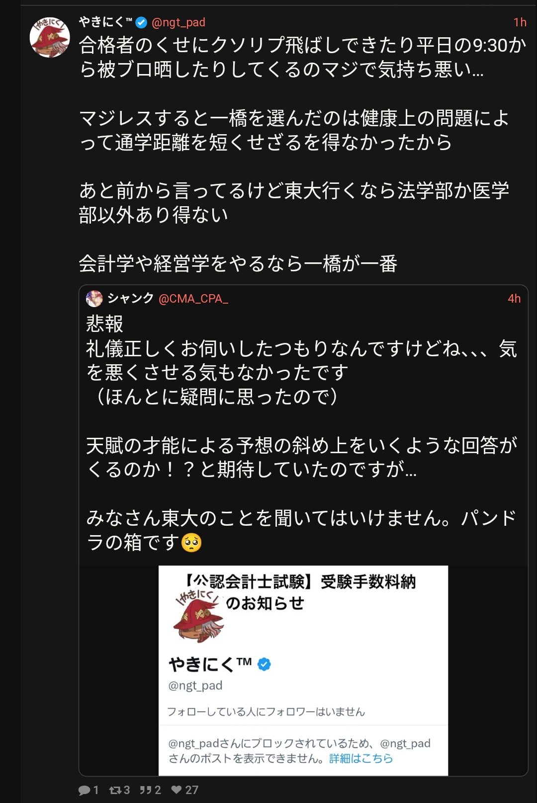 まぁ公認会計士って私立卒の低学歴ばっかやし気にせんでええやろ