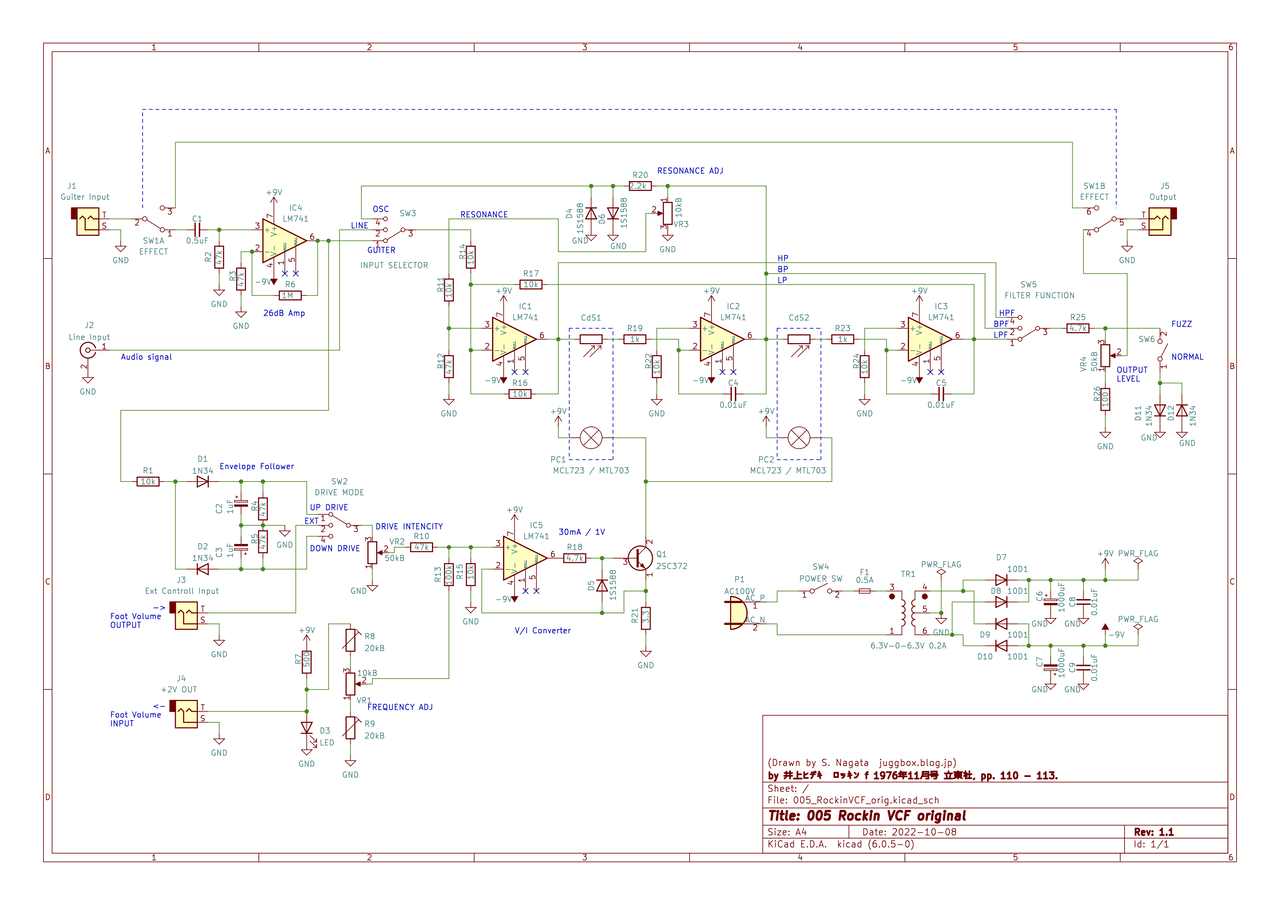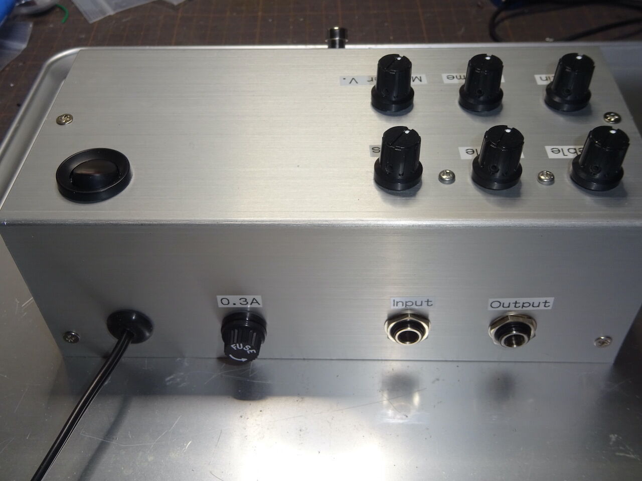 入出力ジャックとフットスィッチ、メイン基板と Gain, Volume,