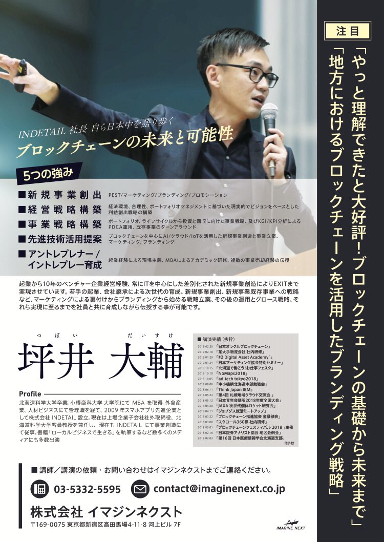- ^ [https://crypto.watch.impress.co.jp/docs/event/1172041.html 次の時代へのレガシー産業生き残り戦略はデータテクノロジーの活用 〜社会の「非中央集権化」推進するベンチャー企業INDETAILによるブロックチェーンの取り組み - 仮想通貨