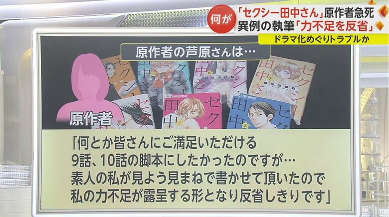 ドラマ化された人気漫画「セクシー田中さん」の原作者で漫画家の芦原妃名子さんが亡くなったニュースについて、その経緯をお伝えする。