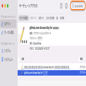 キーチェーンアクセスAppを開き、右上の検索欄に「sourcetree」と入力し、出てきたパスワードを副クリックから削除