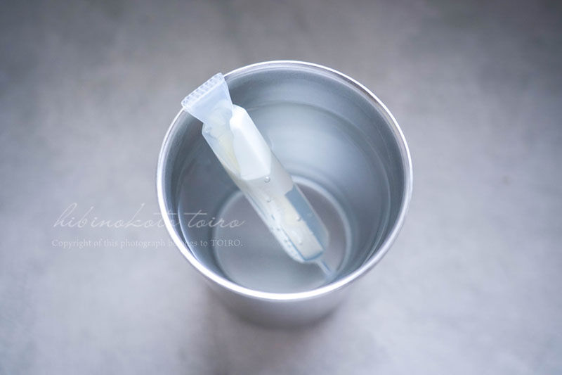 チョコペンは50度くらいのお湯で溶けるので、こんな感じでカップにお湯を入れてチョコペンも浸けておくと全体がすぐに柔らかくなります◎