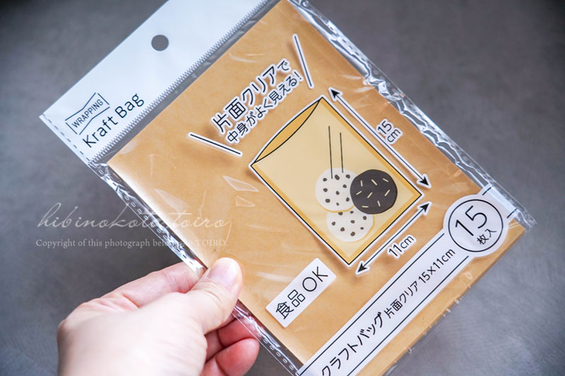 袋はこれ。片面がクリアになって中身が見えるクラフトバッグ。食品OKなやつです。