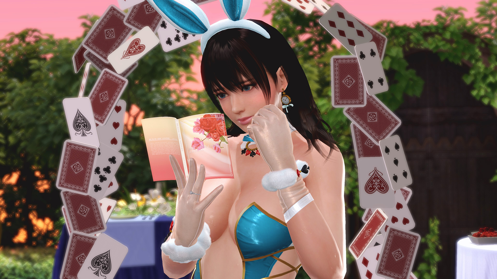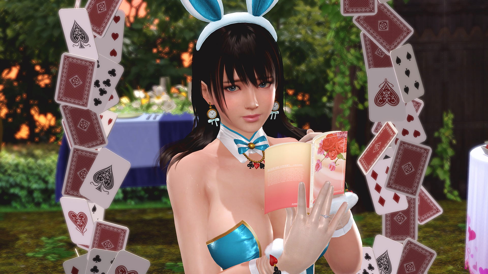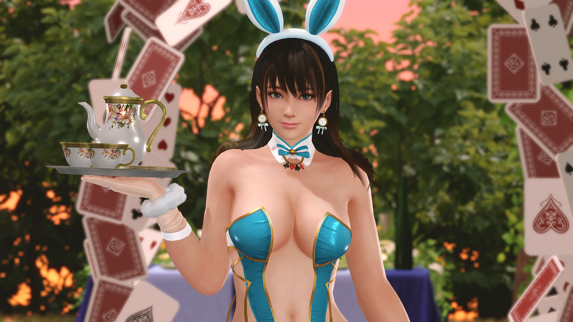『不思議の国のアリス』は地下世界が舞台だと思いますが、窓が無いとちょっと閉塞感感じるので、野外ティーパーティーっぽくしました。