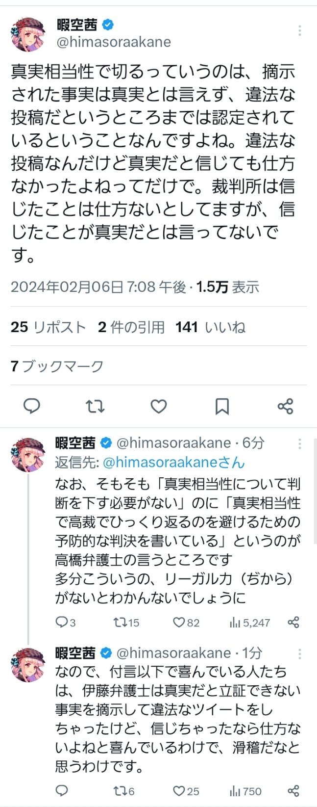 琴葉茜は名誉毀損で暇空を訴えていいレベル