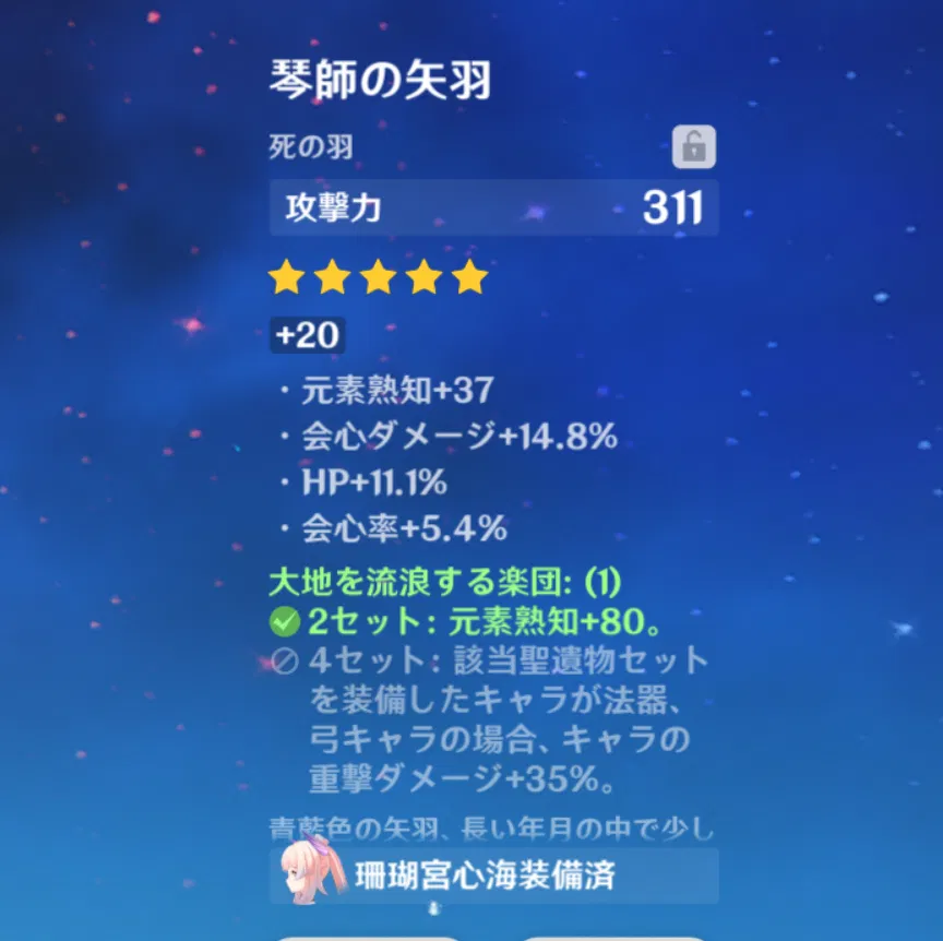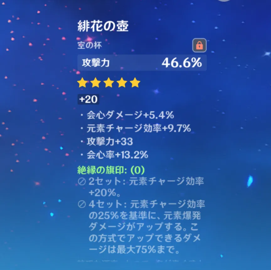 胡桃とか鍾離とかだね~~特に決まった聖遺物はないけど基本、火魔女か千岩かな?