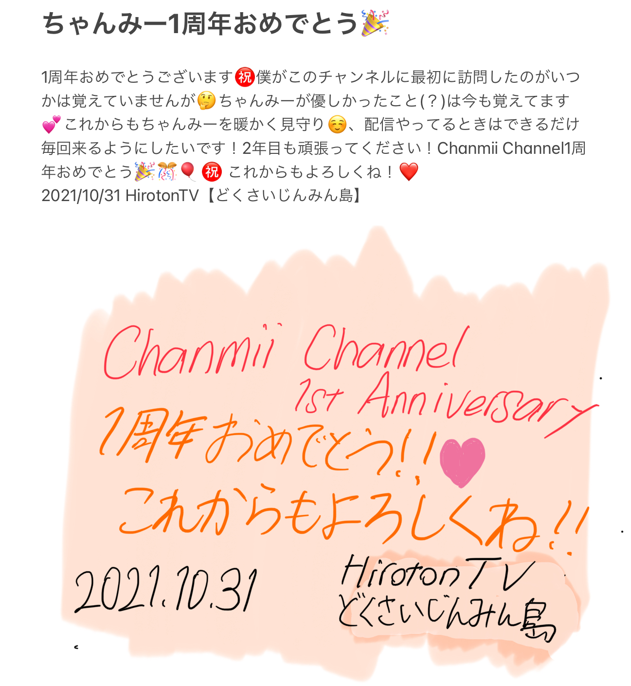 (下記画像は、履歴書、ちゃんみーへのお祝い文、Chanmii Channelの経歴