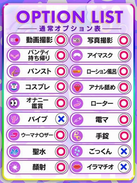 | お姉さん・キレイ系 コスプレ・イメクラ 即尺(即プレイ) 顔射・ぶっかけ イラマチオ・ごっくん 聖水・浣腸 写真・動画撮影 オナニー鑑賞 ロリ・妹系 3P(複数) ギャル メイド・萌え系 深夜2時過ぎまで営業 |