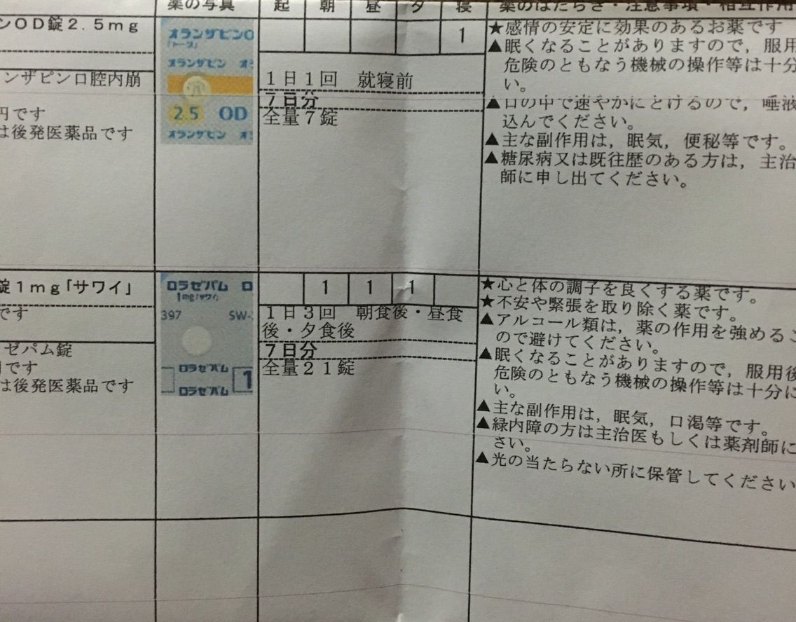 んで、画像の通り病院に逝って薬を貰いました。先生と色々話して、ちょっと薬を変えて貰うことに