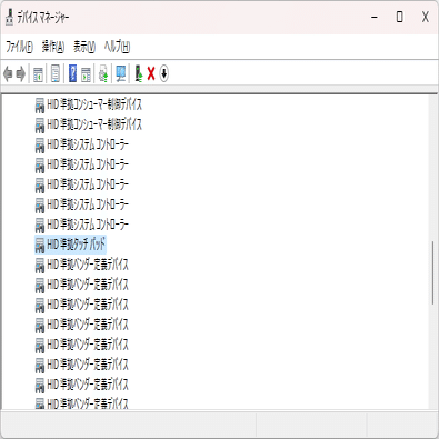 デバイス マネージャーを見ると、「ヒューマン インターフェイス デバイス」の中に「HID 準拠タッチ パッド」といういかにもそれっぽいデバイスがあった。