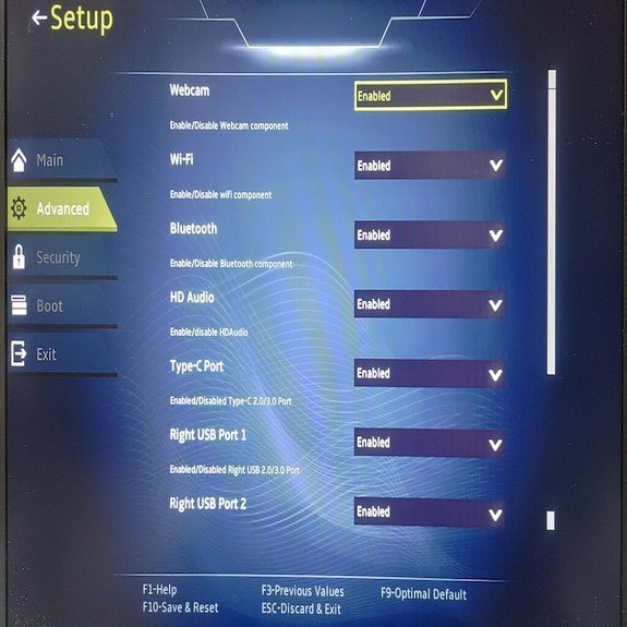 しかし、UEFI の設定メニューを開いてみたところ、デバイスを無効化するメニューはあったが、残念ながらタッチパッドは対象に入っていなかった。