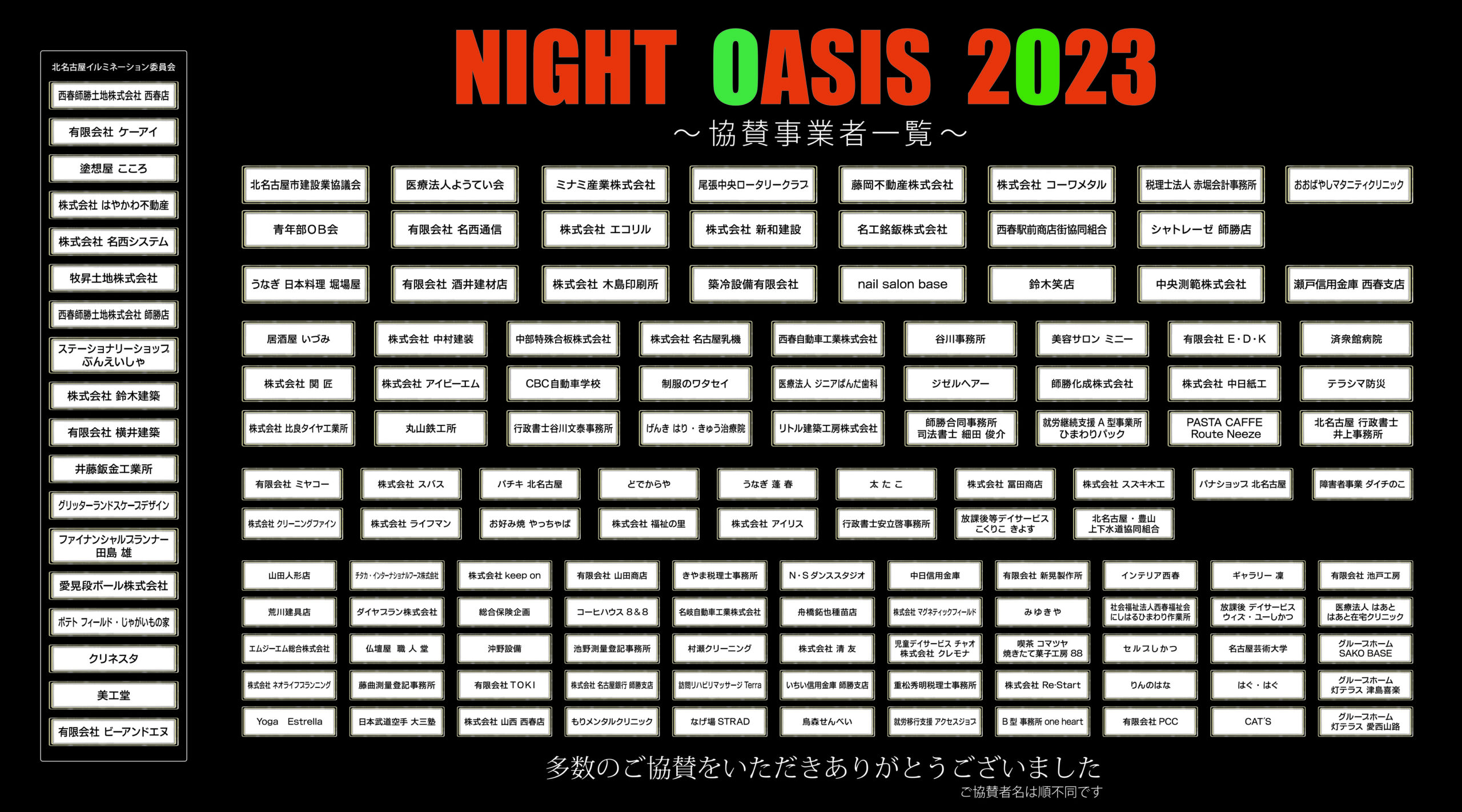 Night Oasis2023にご協賛いただいた企業・団体様