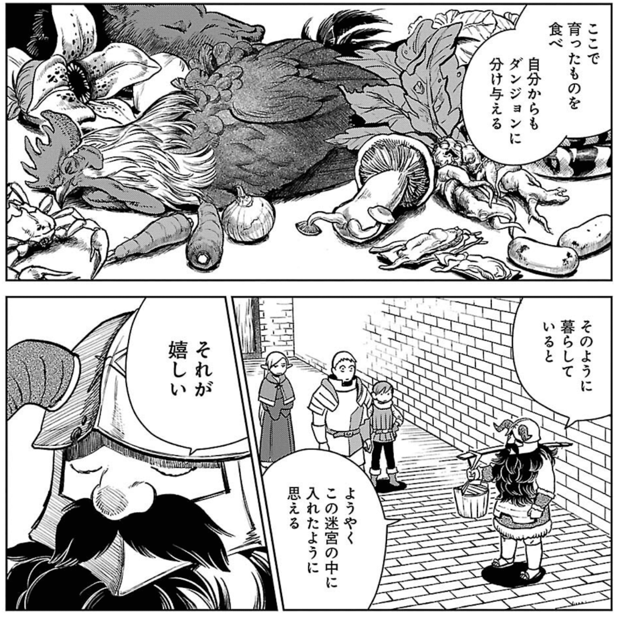 この回はダンジョン飯のテーマである「食うか食われるか、そこには上も下もなく」という世界とはちょっと違う特殊な回でした。