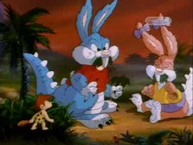 Babs and Buster having a carrot roast with their prehistoric ancestors