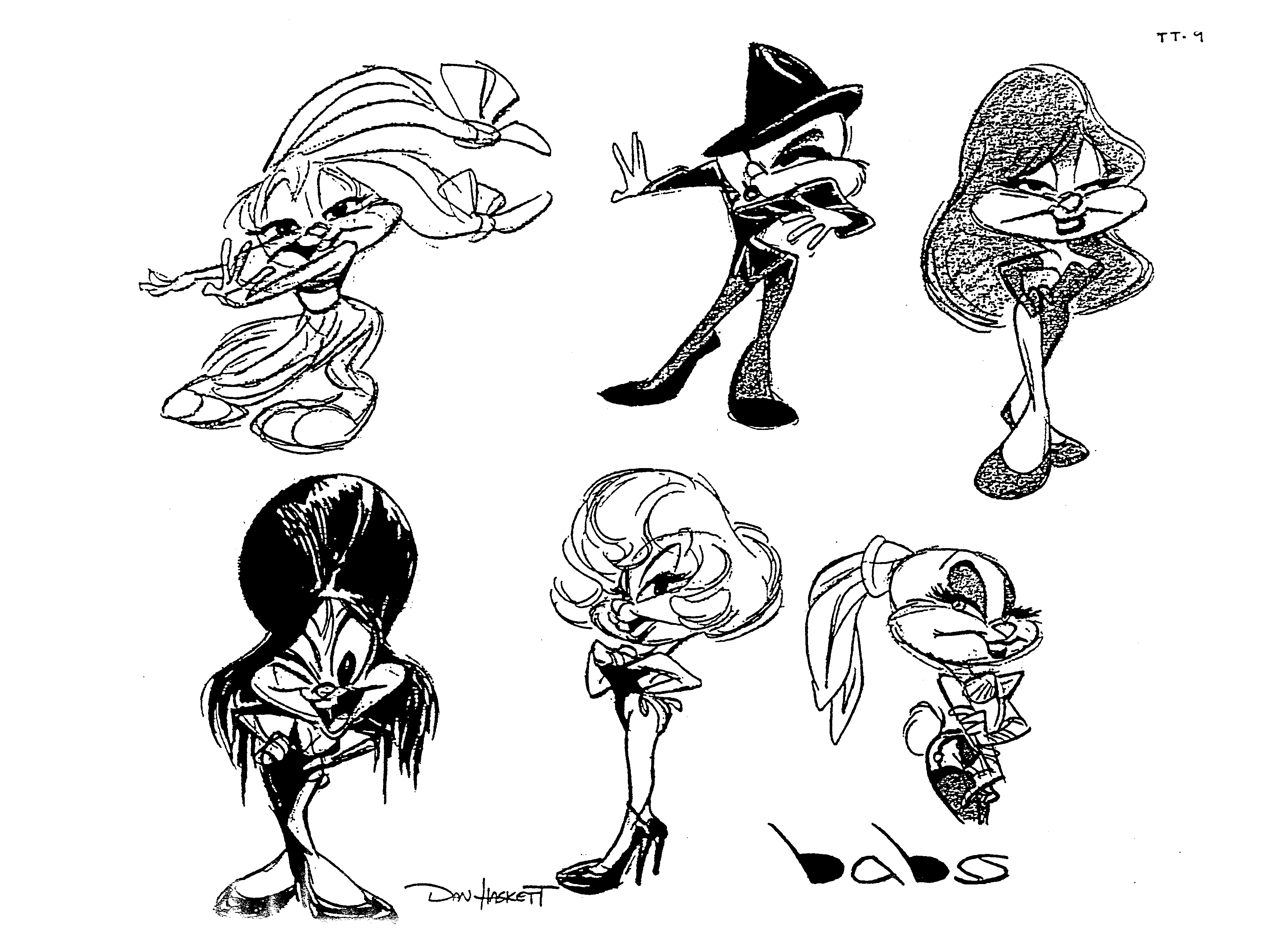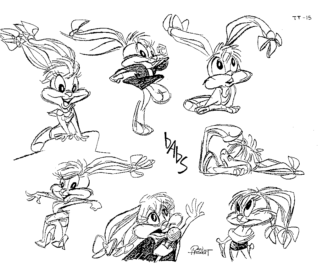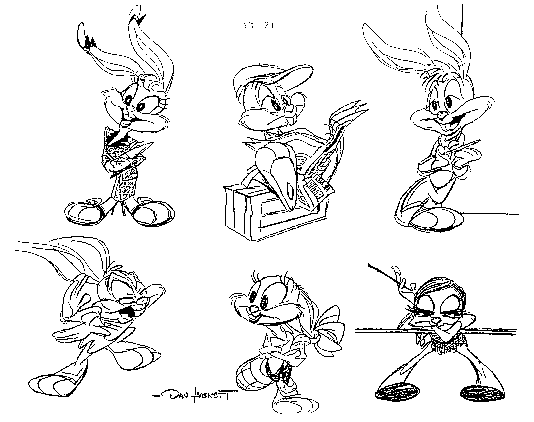 3 early Tiny Toons Logo including the final artwork with Buster & Babs, by Alfred Gimeno, Ken Boyer, Mitch Schauer & Tom Ruegger.