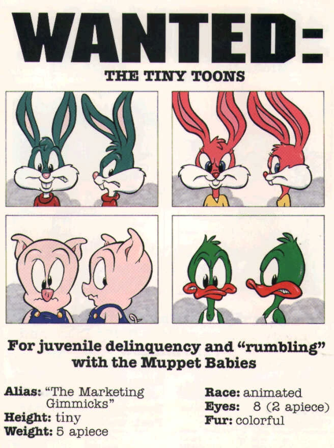 Buster, Babs, Hamton and Plucky in a Wanted poster in a Cracked magazine