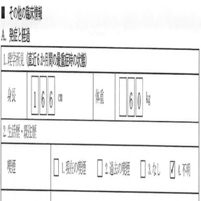 本来は「1.全て除外可」「2.除外不可」にチェックを入れるのみで、個々の病気に〇を入れないフォーマットになっている。〇は入力可能域外に手動で記入されたものである。