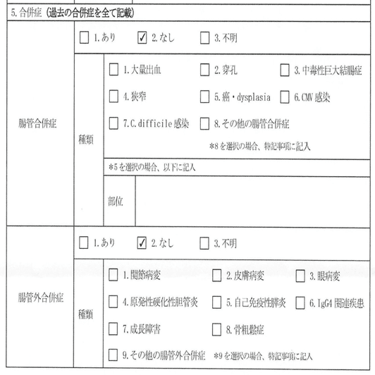 堀口くんの潰瘍性大腸炎の臨床調査個人票について