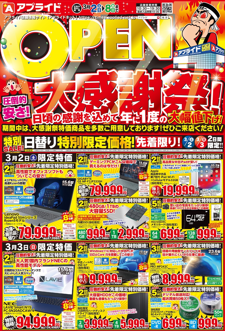 【10店舗同時開催!】年に一度の大幅値下げ!『アプライドOPEN大感謝祭』3/2(土)スタート!