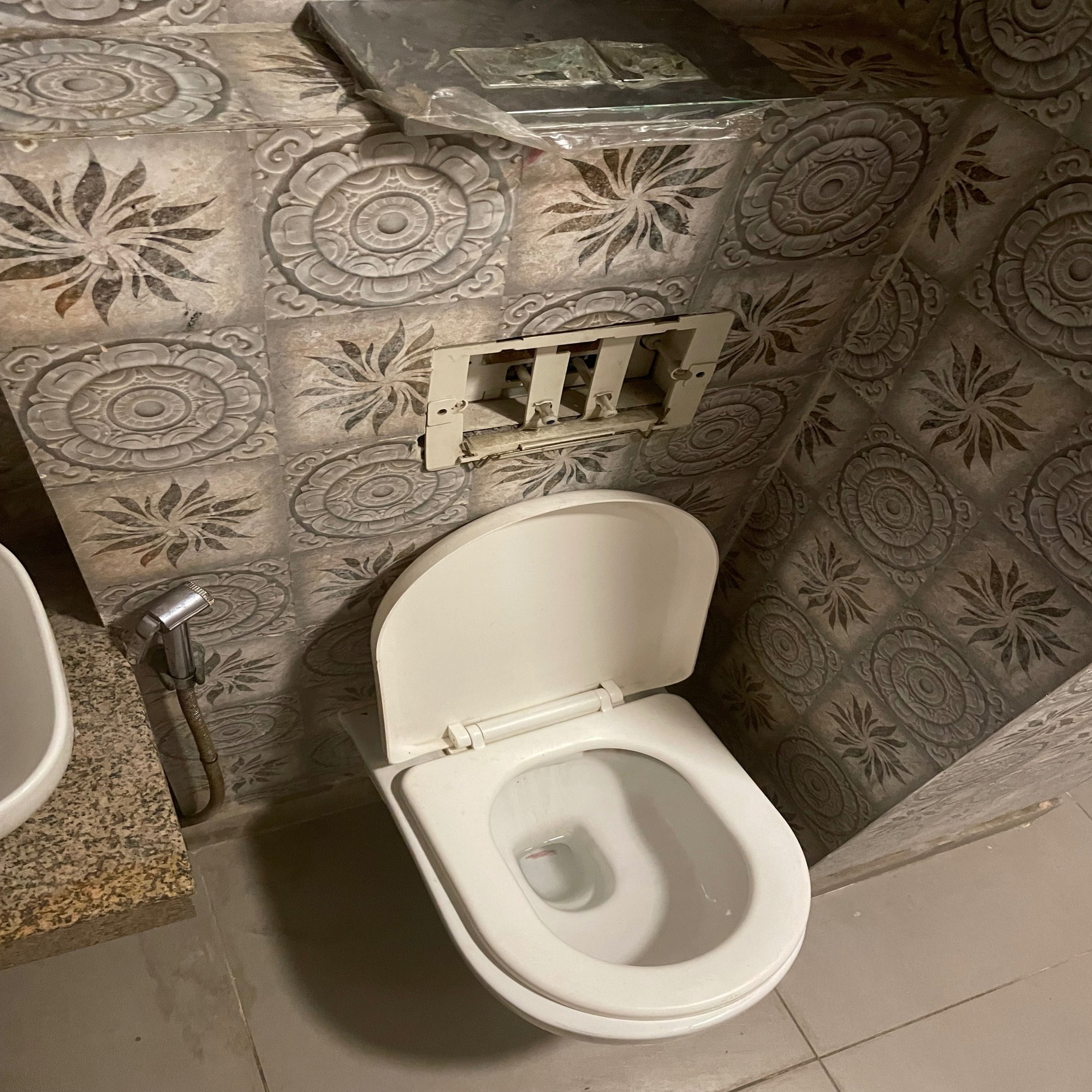 トイレはウォーターガンのみ。しかも元栓の所(?)で調節するから、手元の掴むところの意味をなしてない。しかも水圧が弱い。