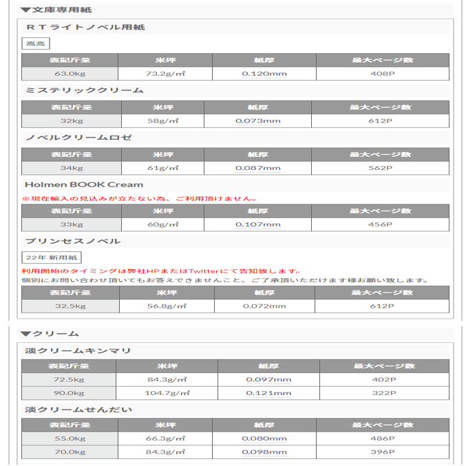 薄いだけじゃなくて、軽くて厚めの嵩高もある。ページ数が多くても少なめでも嬉しい。