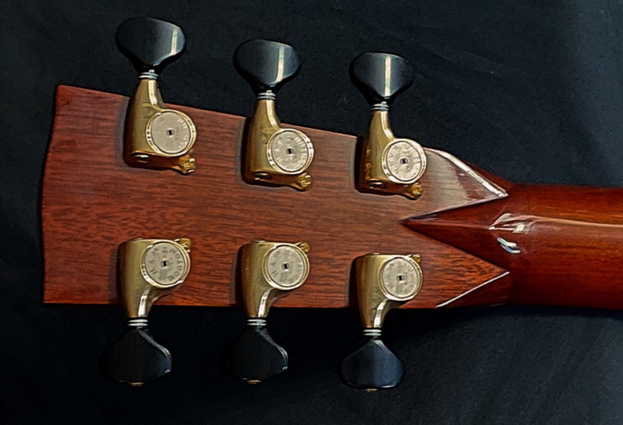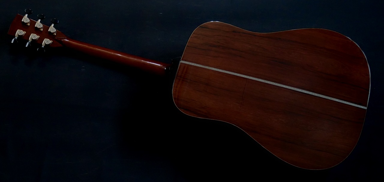 ボディサイズはドレッドノート。トップにはプレミアムグレードの・イタリアンアルパインスプルースを使用。サイド&バックにはトップの響きと音の広がりを押さえ込むことなく見事にトップ材の特性と融合しながら音を出力させる事の出来る、沖田正和秘蔵のプレミアムグレードのマダガスカルローズウッドを使用、そして通常のメーカー、製作家には真似のできない厚いトップ材・厚いサイド材・厚いバック材を使用し、重厚なボディーを組み上げております!!極上ホンジュラスマホガニーのネックとトップ、サイド、バックとが沖田正和の手によるスペイン式ネックジョイント方式で見事に組み合わさり、通常では考えられないバランシングと非常に説得力のある、極めてハイレベルで音楽的な鳴りと音量の出力を実現しております。また、沖田正和独自のスキャロップドXブレーシングにより、スキャロップをしているモデルにありがちな音の軽さとは無縁で、驚くほどのしっかりとした密度の濃い、厚みのある豊かなサウンドを出力いたします。