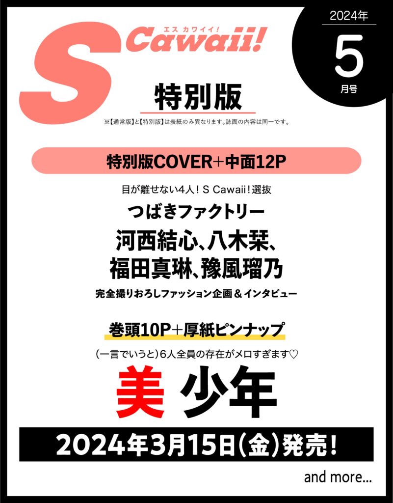 S Cawaii! 2024年5月号増刊 特別版 つばきファクトリー(河西結心、八木栞、福田真琳、豫風瑠乃)【インフォスクエア限定特典:ポストカード1枚】