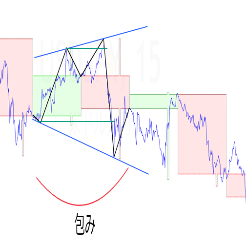 三尊のヘッドに損切りライン、