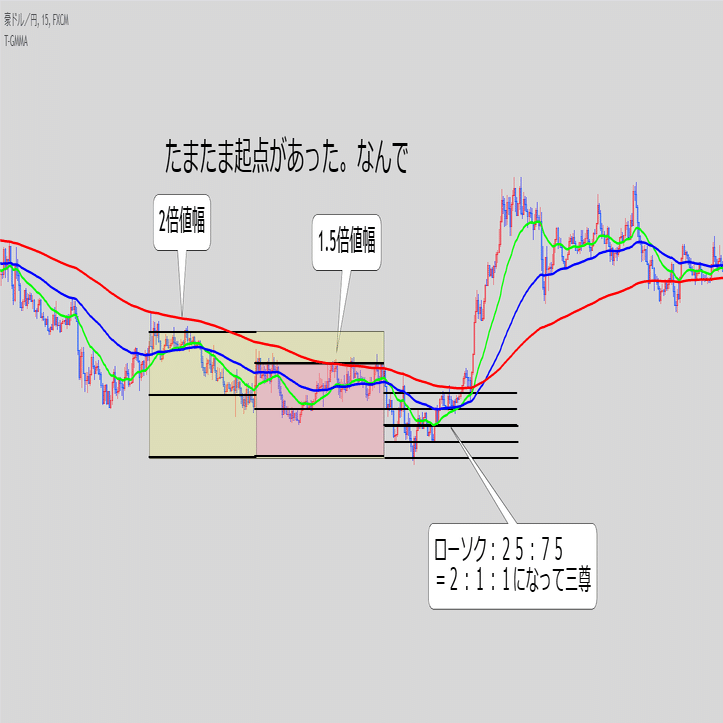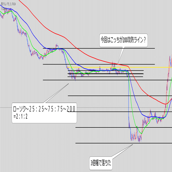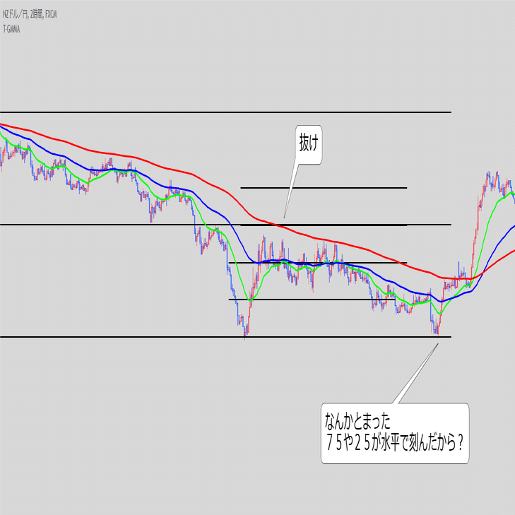 ③ローソク・25・75で均一な値幅であることを確認
