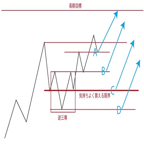C…逆三尊の安値。ここも狙ってみたいと思います。