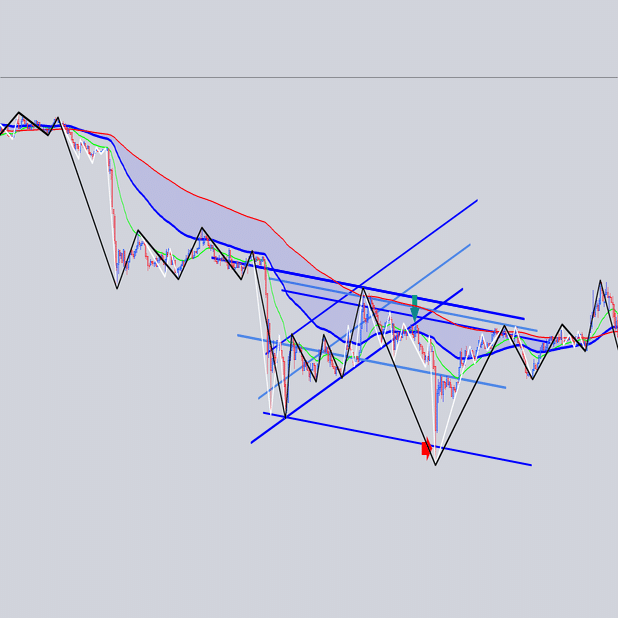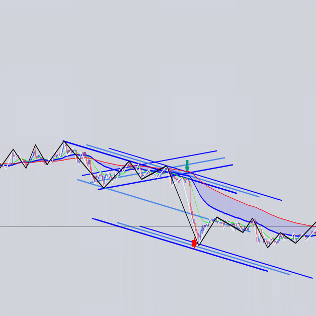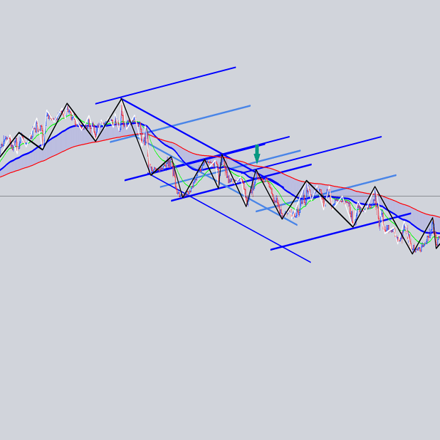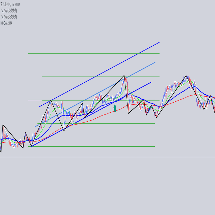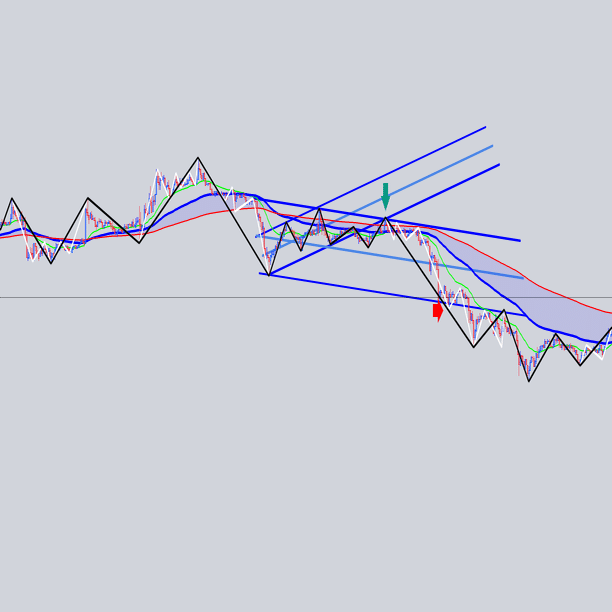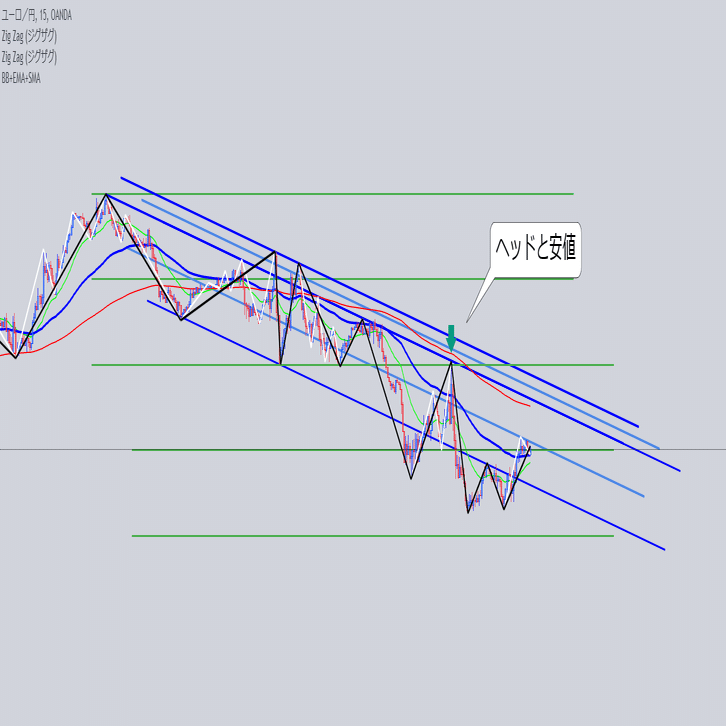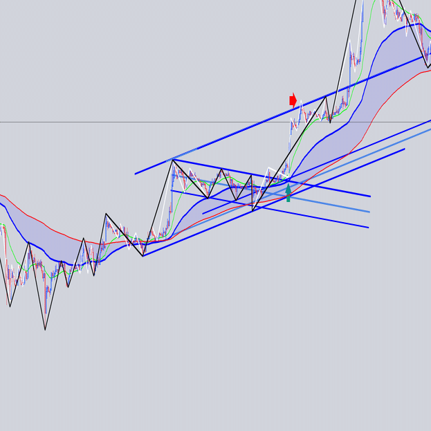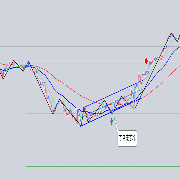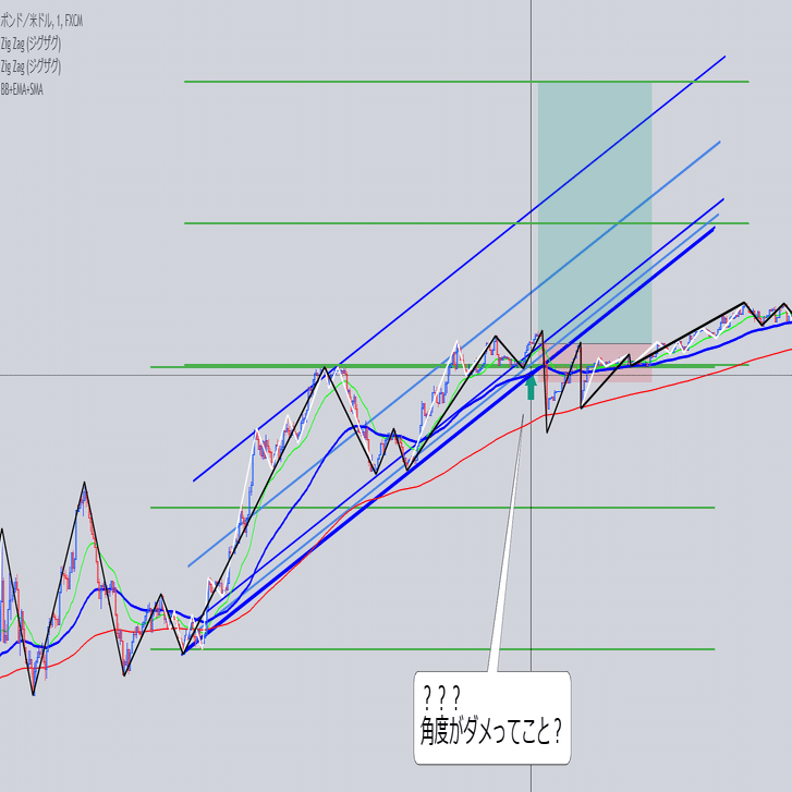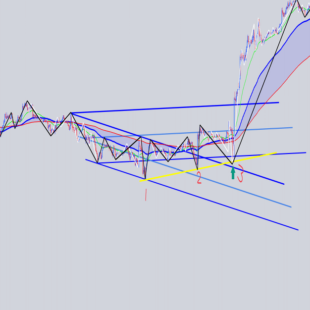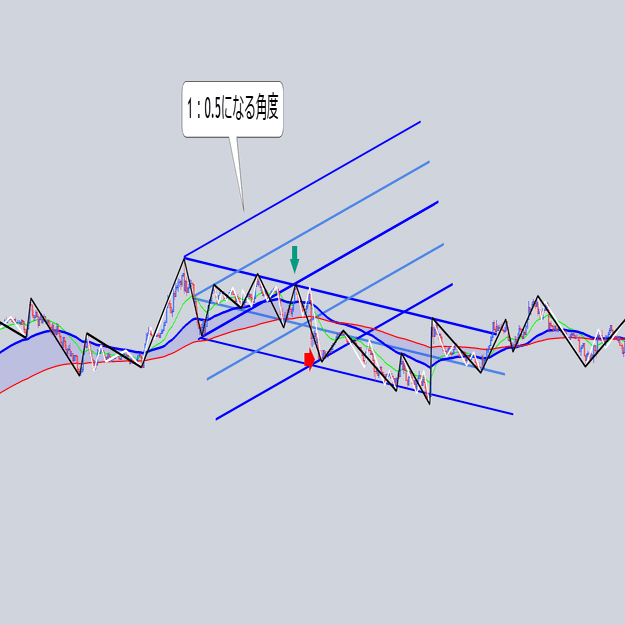 安値を結んだ大外の角度と交差