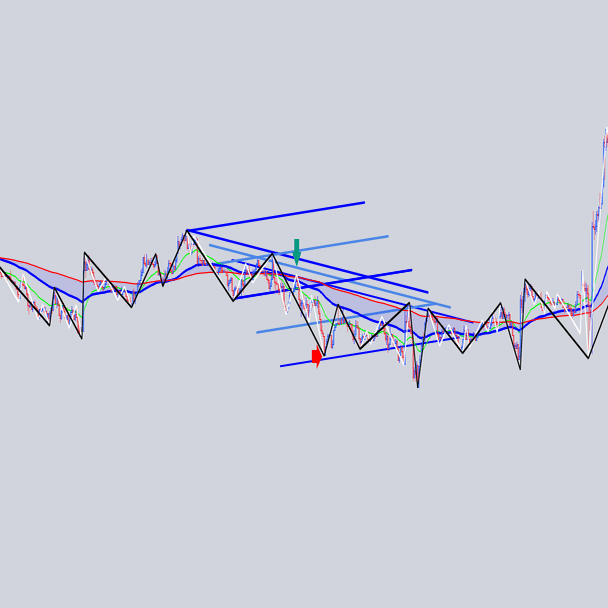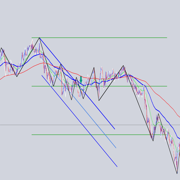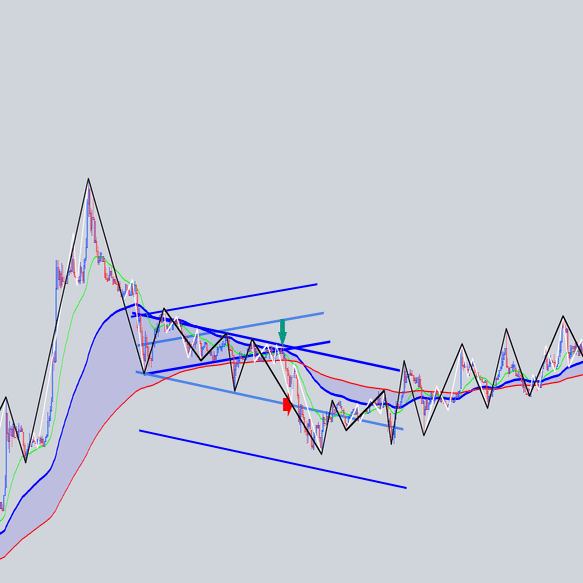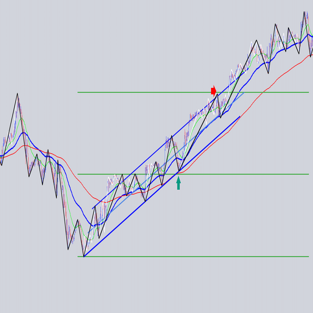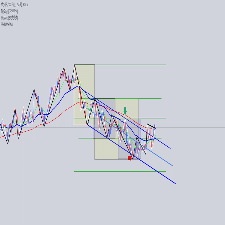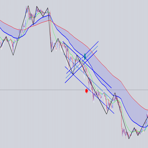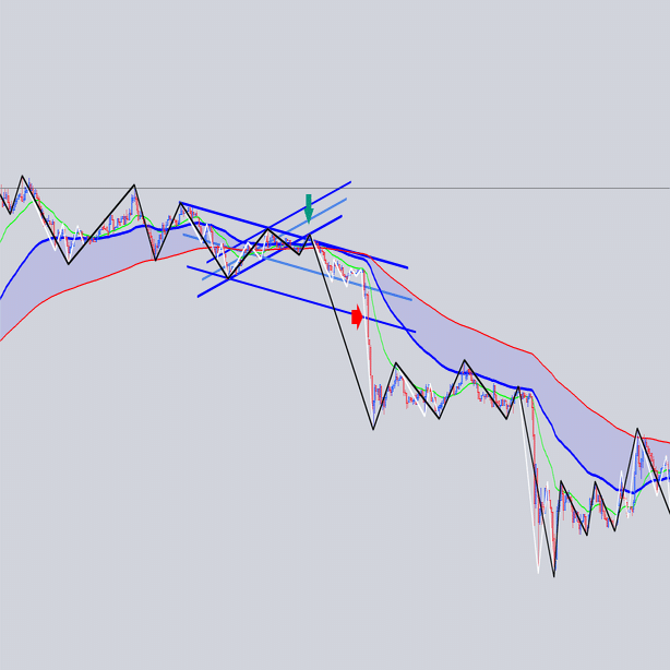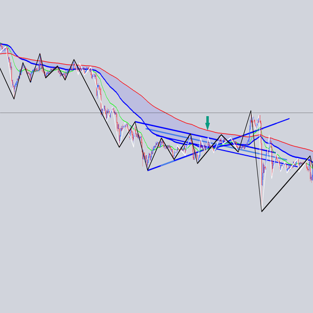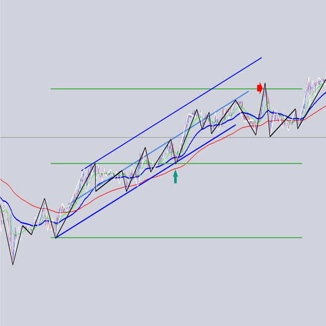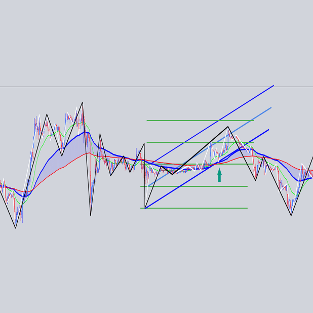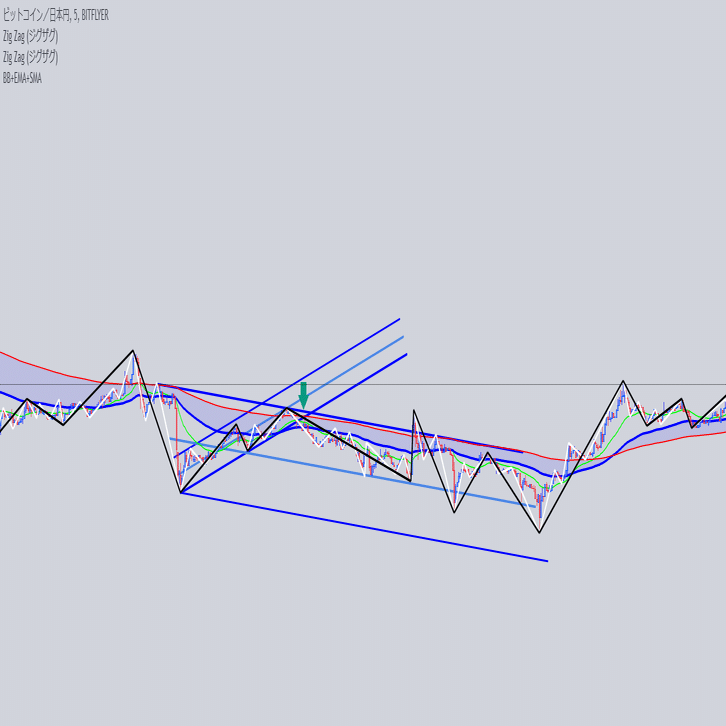 安値を結んだ大外の角度と交差