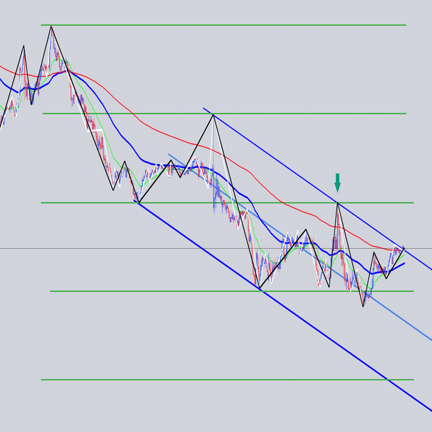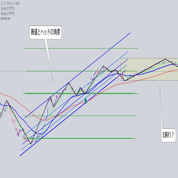 水平のレジサポと斜めの関係を見ていきます。