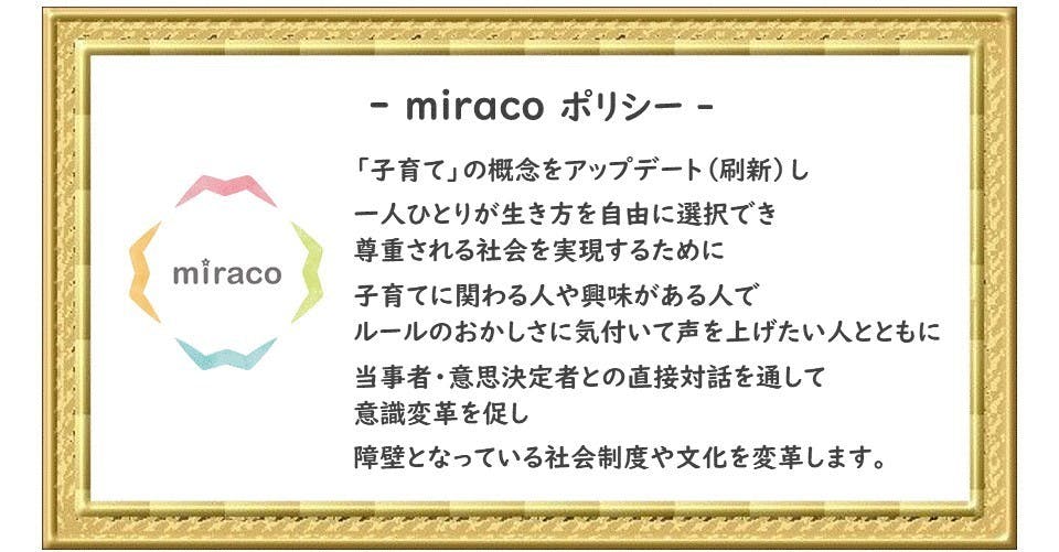 このような考えに至り、私たちは「みらい子育て全国ネットワーク(miraco)」へ生まれ変わることにしました。