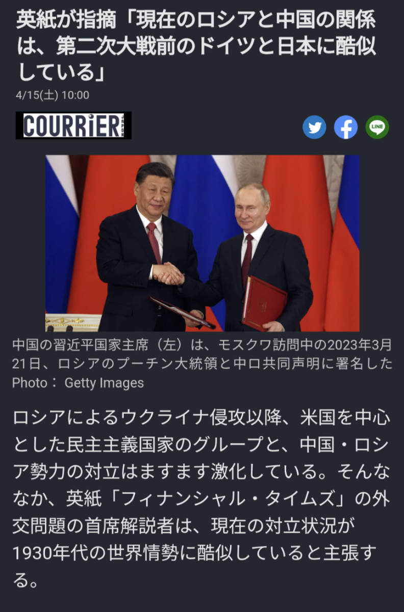 英紙が指摘「現在の中国とロシアの関係は、第二次世界大戦前のドイツと日本に酷似している」