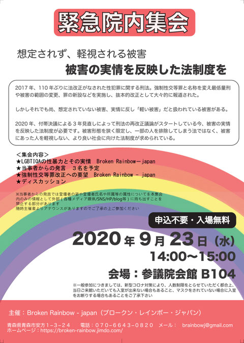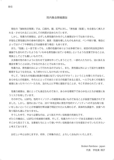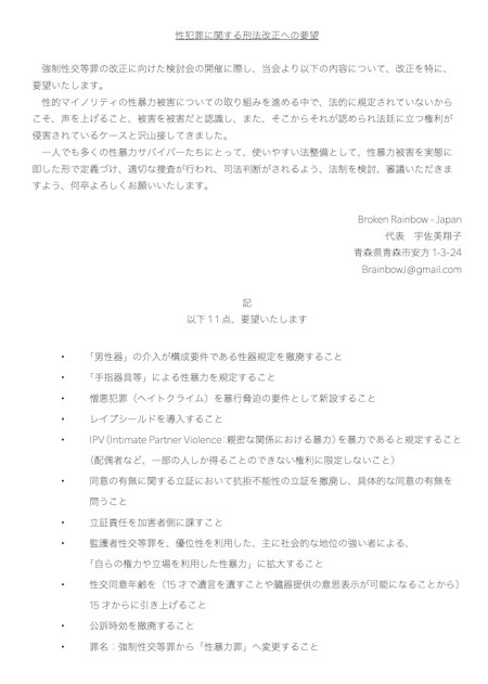 ★強制性交等罪改正への要望 Broken Rainbow - japan