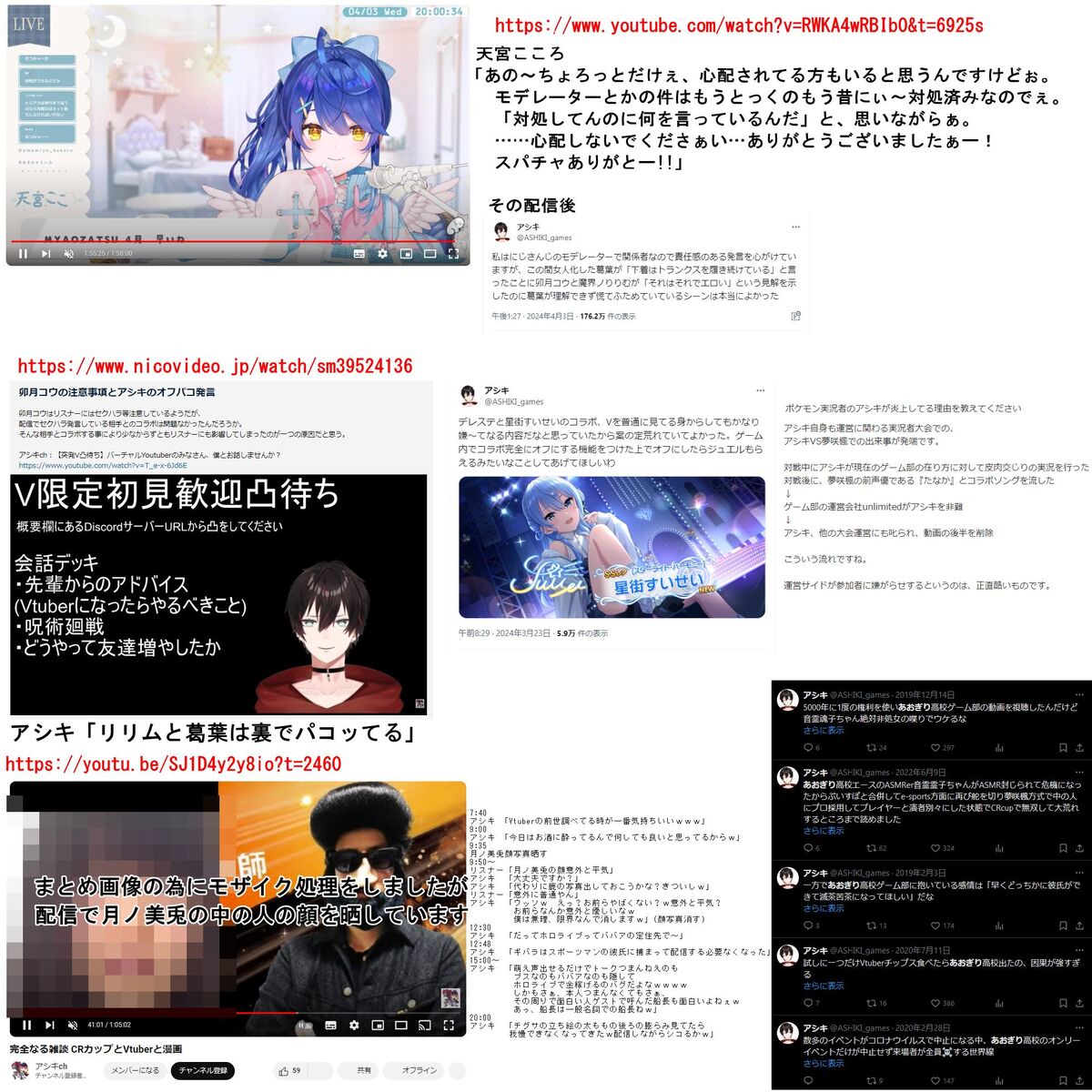 ホロライブ・星街すいせいへの誹謗中傷者 天宮こころ以外のにじさんじVTuberのモデレーターも担当