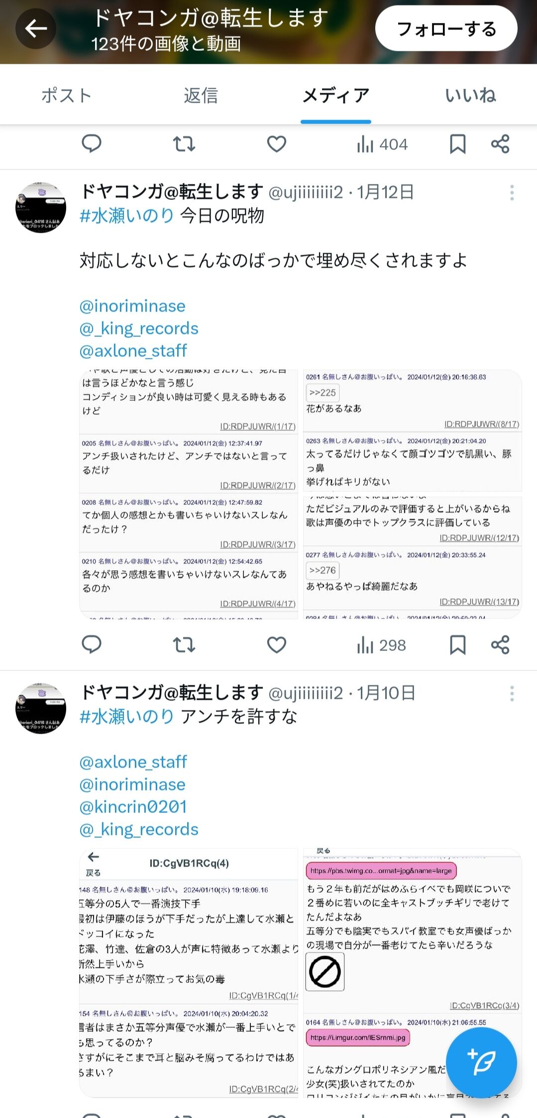 この人が水瀬いのりのファンならライブに行きました!っていうツイートやこの人とエンカしましたって人がいてもおかしくはないと思うんだけど....