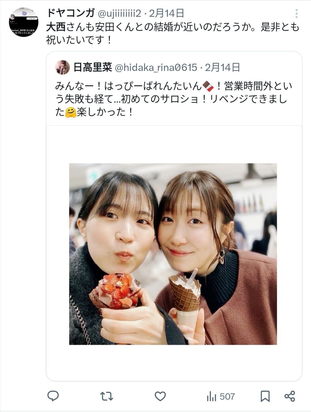 ↑これ親友の大西と安田が付き合ってるのほぼ確定か