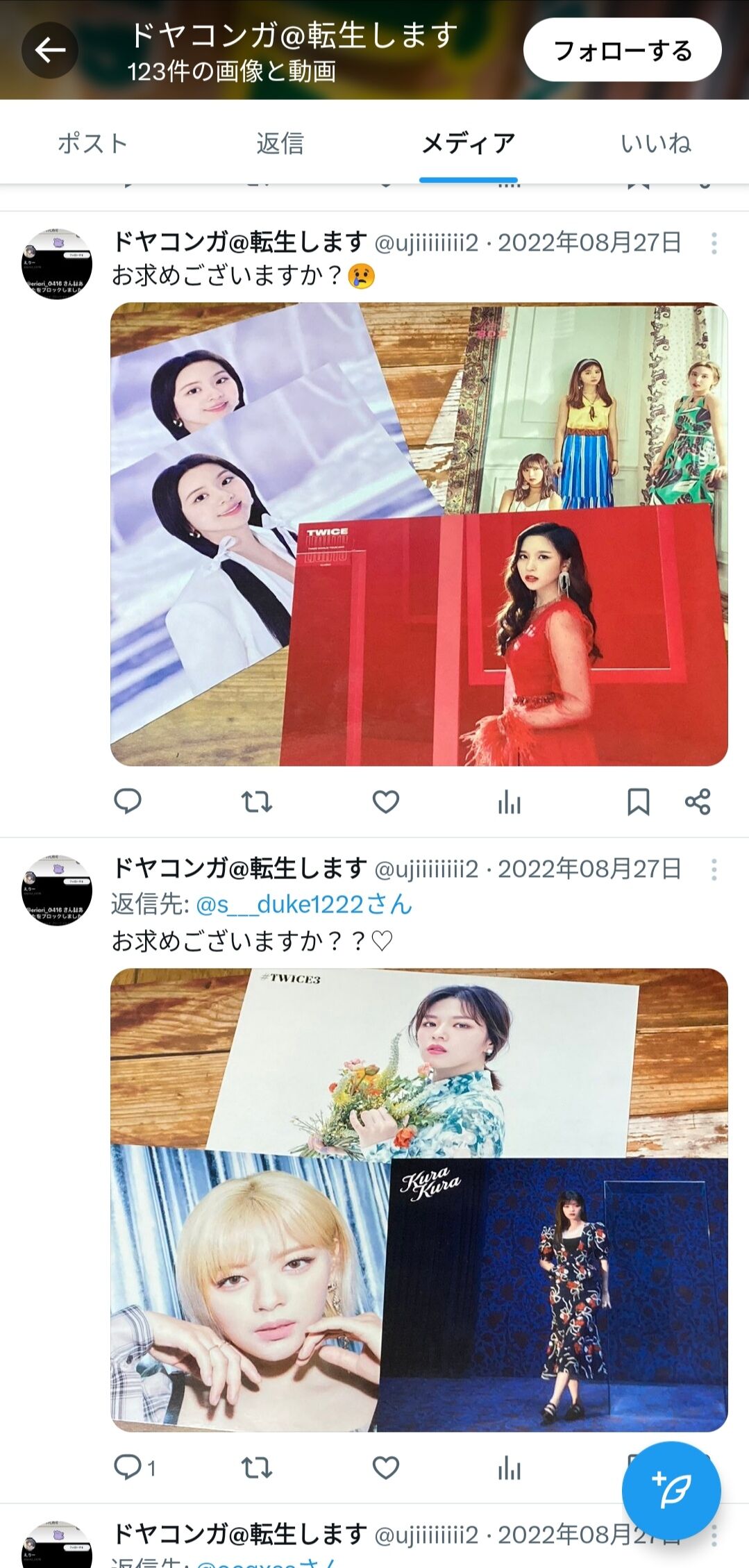 ↓これと似た絡み方をしていたアカウントが見つかる