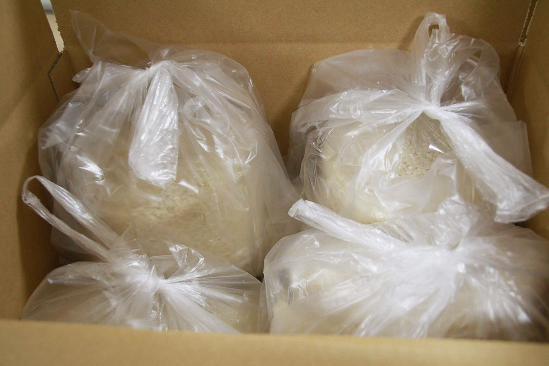 ご家庭にお届けするお米の仕分けをされる本村さんの様子